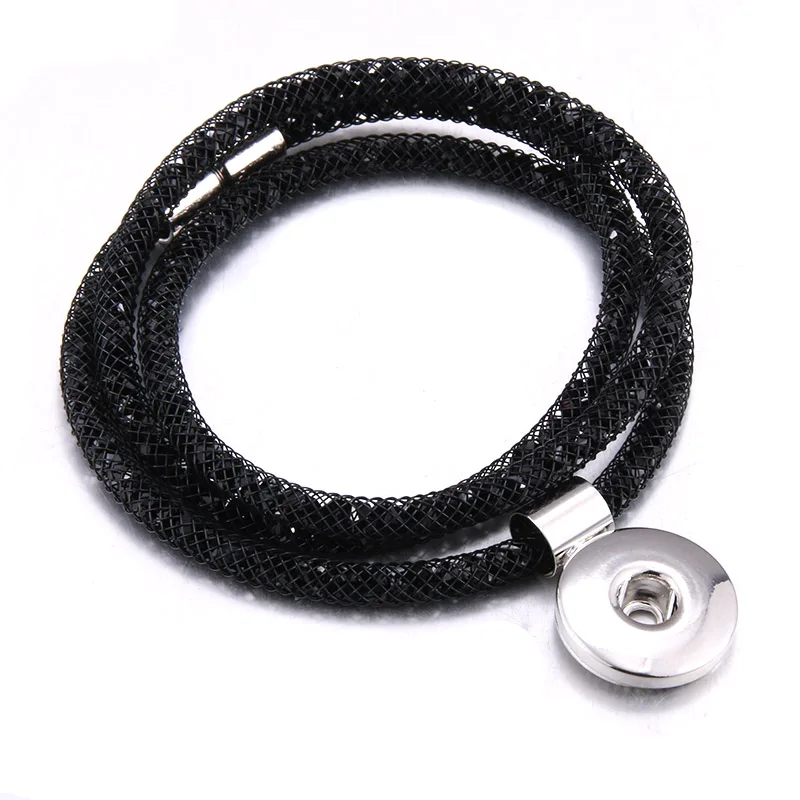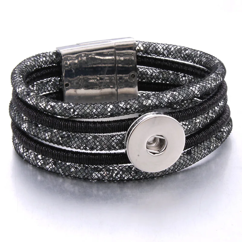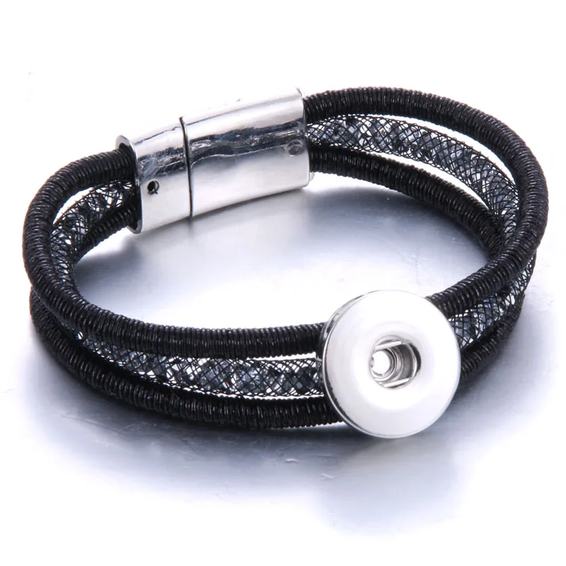 2020 New Snap Button Jewelry Vintage Beaded Black Leather Snap Bracelet Fit 18mm Snap Buttons Bohemia Magnetic Leather Bracelets